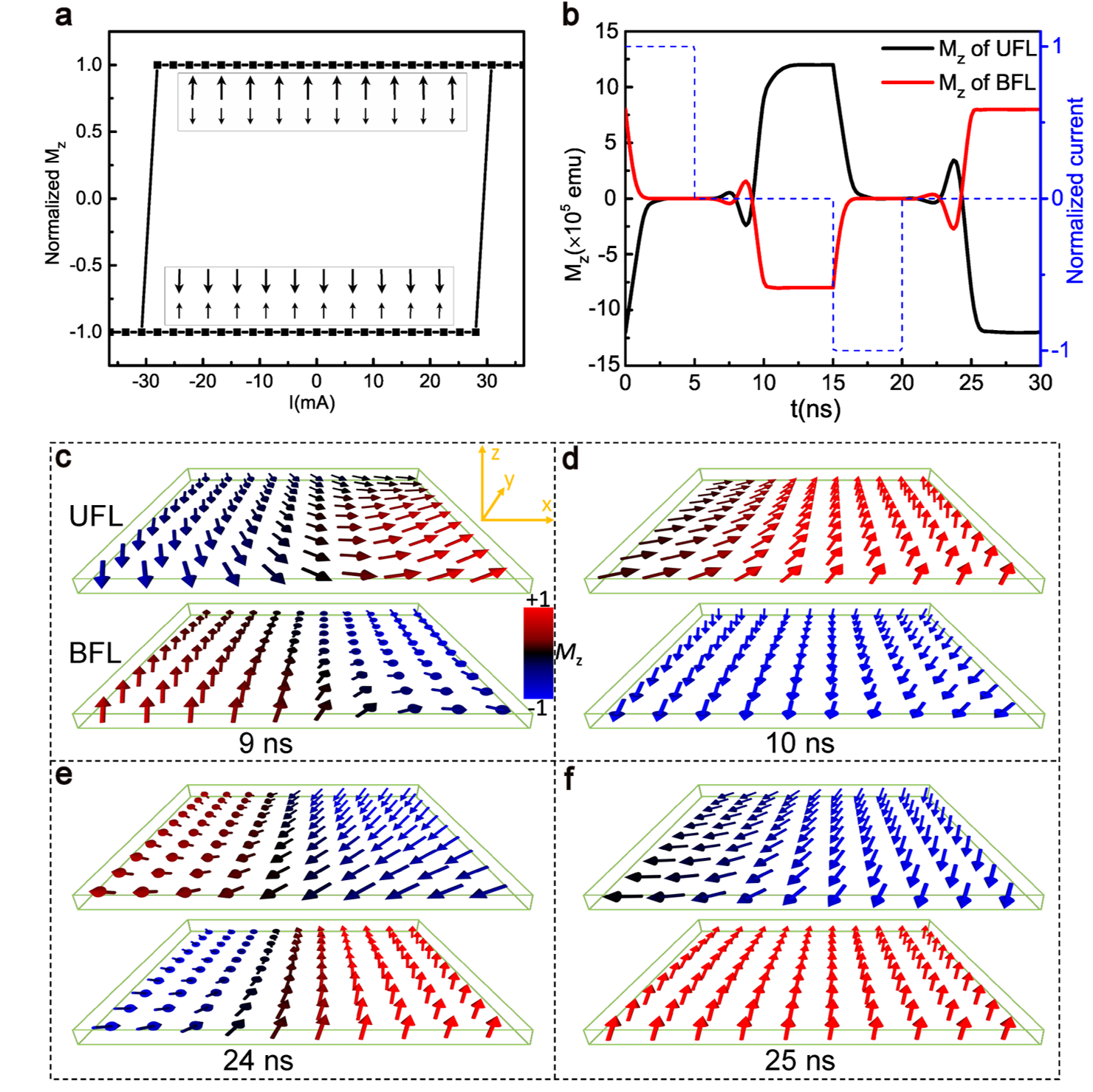 图3. 人工反铁磁中无磁场磁矩翻转的微磁学模拟