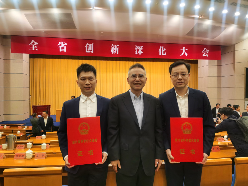 会议现场颁发了2022年度浙江省科学技术奖一等奖项目的获奖证书。我校自动化学院徐铭恩教授主持的“融合多源成像与增材制造的精准诊疗技术装备及应用”项目与通信工程学院颜成钢教授主持的“面向异构硬件的视觉算法自动开发关键技术及平台应用”项目获得科技进步一等奖。徐铭恩教授团队发明的微型激光双色合光成像技术与核心器件,打破国外对国内扫描仪垄断;首创的显微层析成像介导的增材制造技术,攻克了个性化医疗器械增材制造缺陷多、质控追溯难、通量低的难题;研制出的成套关键核心技术、系列装备已实现产业化、临床转化,近三年新增销售收入18.25亿元,临床应用超过52万例,临床应用价值巨大和经济社会效益显著。颜成钢教授团队针对高精度模型结构设计难、多架构计算芯片适配难、全链路视觉算法开发难等问题提出了相应的解决技术,有效降低开发门槛并提高开发效率;该项目成果获授权发明专利40件,软件著作权11件,近3年实现直接经济效益40多亿元,社会效益显著。